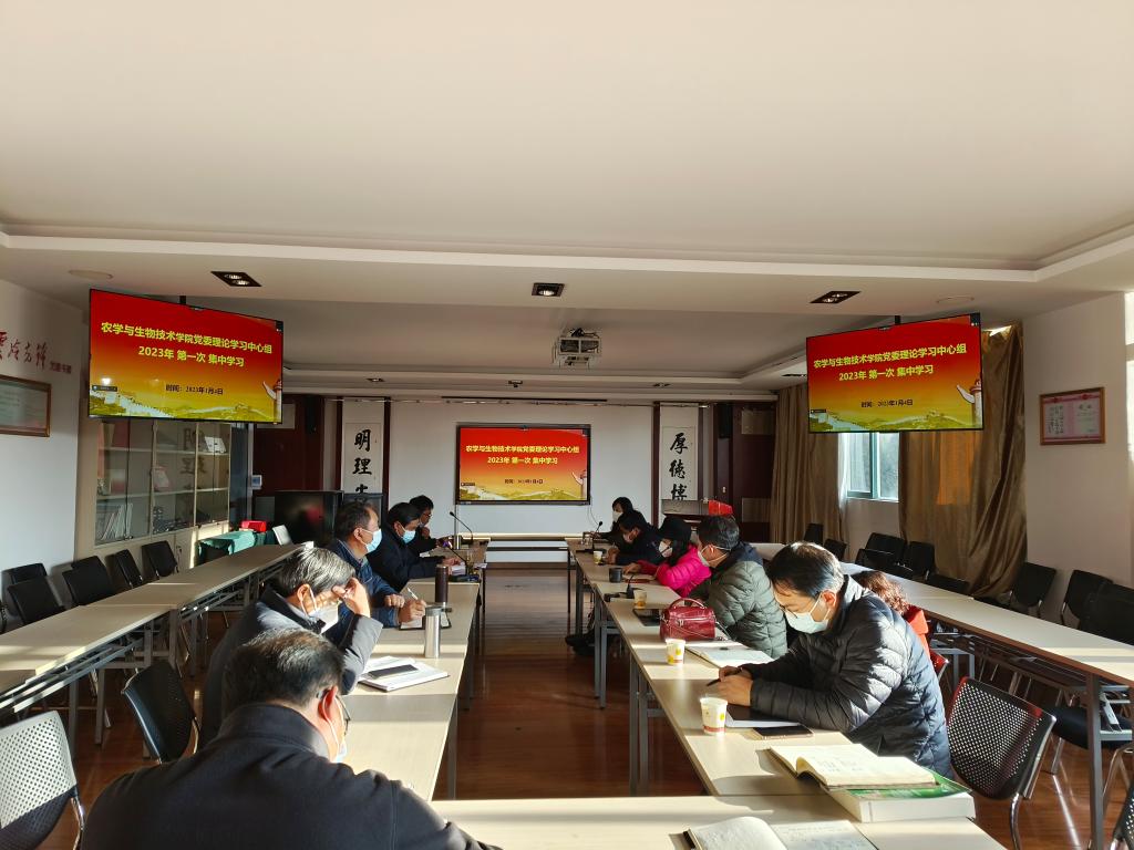 2023年1月4日上午,农学院党委理论学习中心组2023年第一次集中学习在院会议室举行,会议由院党委书记李富生同志主持并做主题发言,采取线下、线上(腾讯会议)结合的方式开展,学院的全体管理人员参加了学习。会议主题是“学习贯彻党的二十大精神,开好2022年度民主生活会”