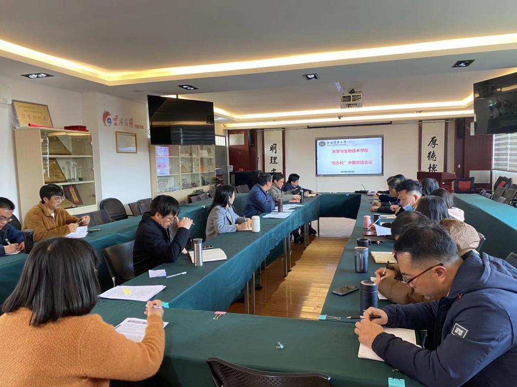 2024年1月10日,农学院在尚农楼304会议室召开了“院办校”中期工作总结会议,院处级领导及各系、专业、学位点、部门负责人参加了会议,对“院办校”工作进行了中期总结。