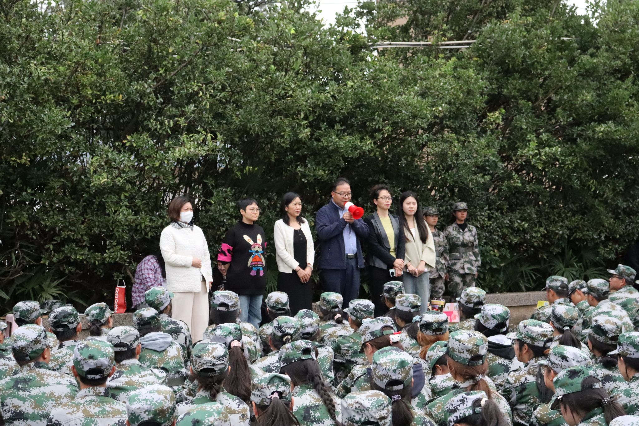 10月22日下午四点,逼喱逼喱 党委副书记安曈昕老师、党委组织员寸湘琴老师、新生班主任、辅导员代表学院前往田径场慰问正在军训的2024级新生。