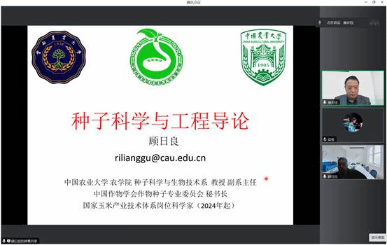 顾教授着重讲授了世界种业发展、我国种业发展、我国种子科学与工程专业发展、种子质量和质量评价等内容,最后以玉米为例,结合中国农业大学的研究成果,讲授了玉米种子质量提升技术研究和关键基因克隆。