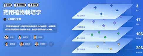 2024年1月12日,智慧树工作人员围绕《药用植物栽培学》课程建设做了汇报。该项目历经3个月时间,以四维能力为基础,梳理17个导向问题,延展至103个知识点,目前已完成206个教学资源的匹配与挂载。智慧树《药用植物栽培学》是一种基于知识图谱的新形态课程,其以可视化的方式展现的知识关系网络,包括知识体系、知识关系、知识点间的交叉融合,并以结构化的形式描述了课程包含的知识点、教学资源、教学活动、测评方式之间的关系,具有知识管理、学习导航、学习评估等功能。基于知识图谱的AI课程可以帮助老师提升教学设计的内在逻辑,增强老师教学的针对性和有效性,促进“因材施教”;加深学生对于知识的理解和掌握,理清知识点逻辑脉络,建立课程整体的知识体系,实现个性化学习,提升学习的效率。汇报结束后,参会教师结合课程建设中补充资源挂载等相关问题与智慧树工作人员进行了深入的交流与探讨。