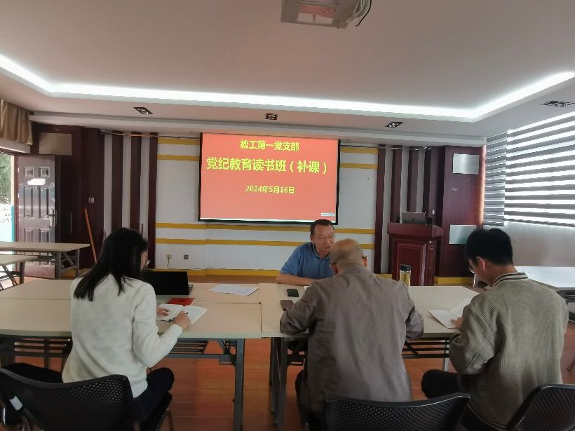 5月16日下午,根据党纪学习教育读书班的要求,在支部书记组织带领下,对读书班请假未到会的同志进行补课,从而保证了全员学习。