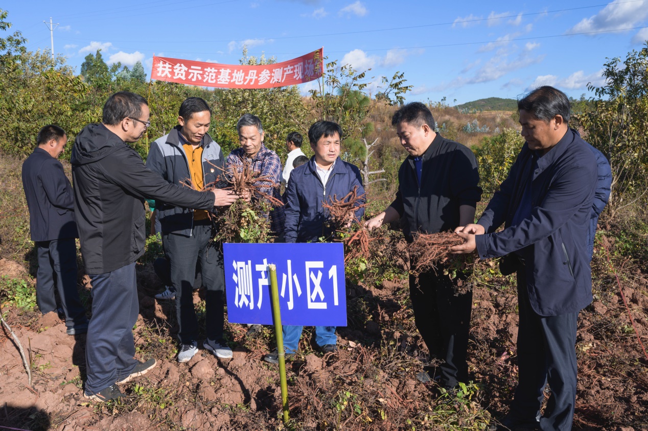 建立丹参、黄芩、红花等中药材种植示范基地10亩,带动推广290亩,其中包括丹参规范化种植示范基地96亩(包括核心区5.2亩),编制种植技术,开展种植技术培训16场次,合计800人次。在2020年年底采收测产中,3个样点丹参鲜重的平均单产为1002.17kg/亩(比2019年530kg/亩增产89.1%),获得丹参总产96192kg,实现农业总收入38.4万元。采取支部共建方式,开展科技示范推广中药材种植,辐射带动了周边农村种植药材的积极性,促进了山区农村经济的发展。